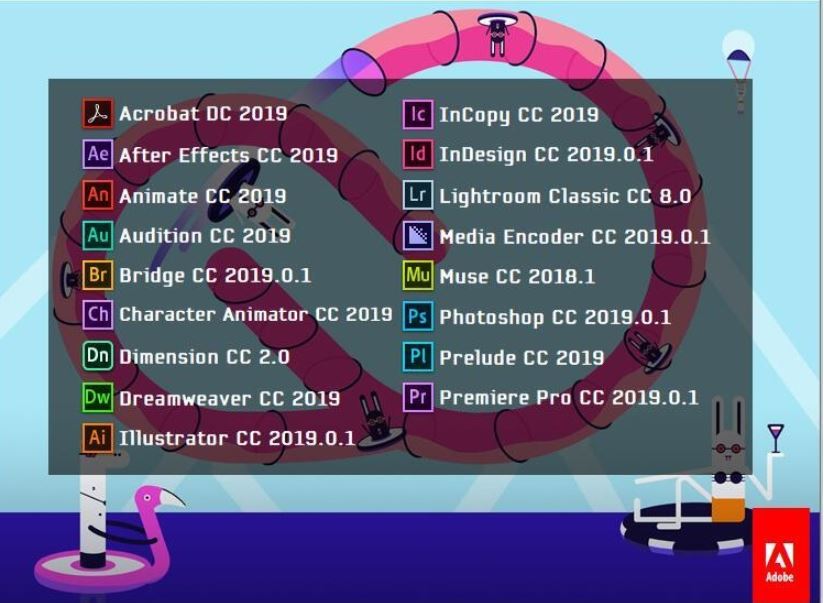 Adobe CC 2019 9.9.0 大師版 CC 2019是Adobe旗下產品安裝包合集