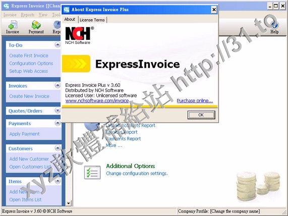 NCH Express Invoice Plus v3.60 英文正式版(專業的發票軟體讓您可以管理客戶帳戶軟體)