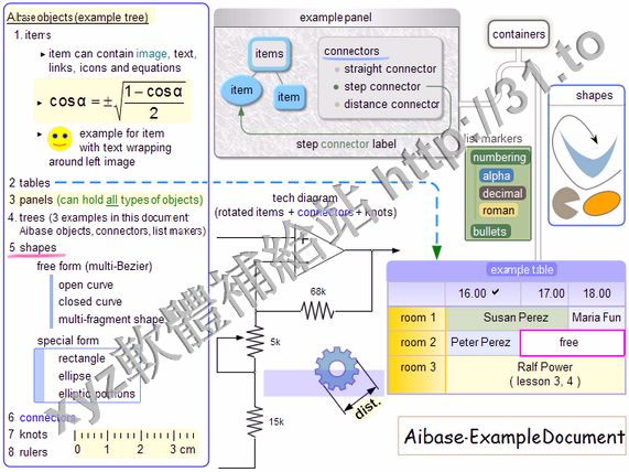 括工具和向量圖形編輯器等。他使用對像組成文檔,對像種類的多樣性(圖片、表格、