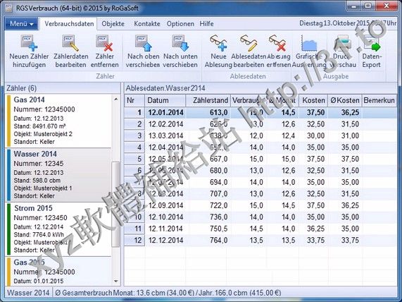 Mit der Software "RGS Verbrauch" koennen mehrere Zaehler (z.B. Strom,