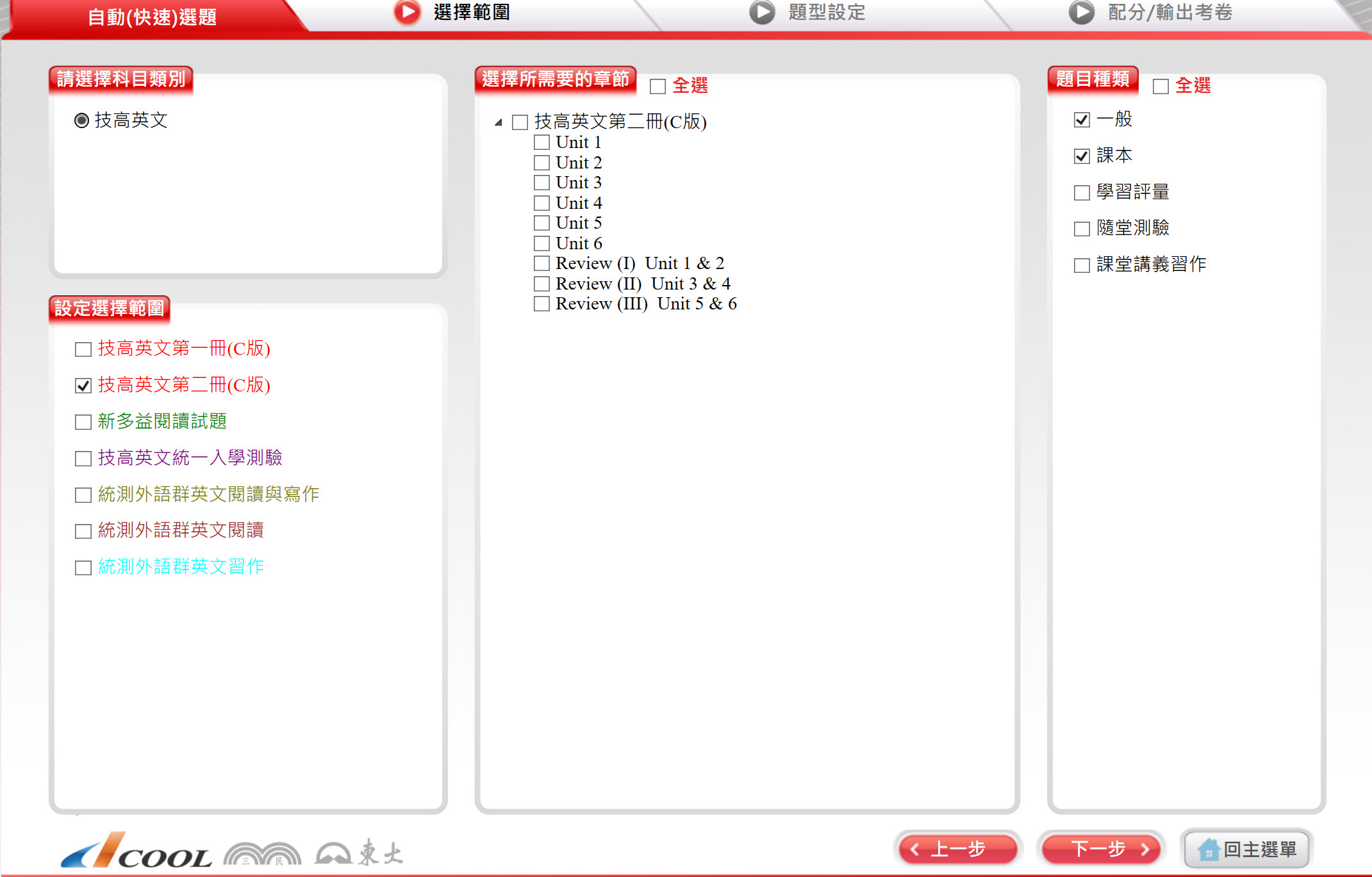 111學年下學期 技術高中命題光碟 三民東大版 英文科(C版 1-2冊)(108課綱) 題庫光碟