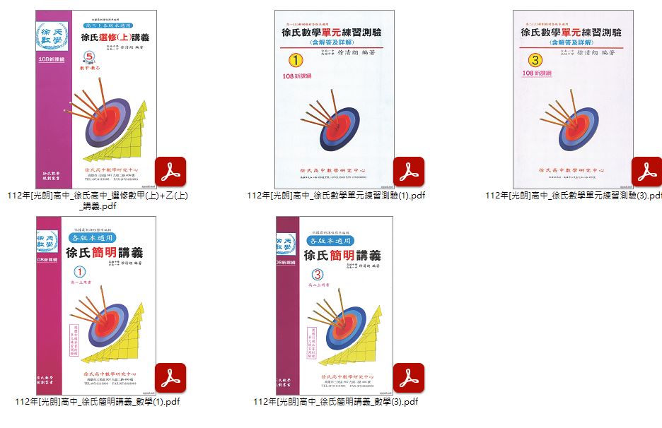 112年高中[光朗]徐氏高中講義 選修數學(甲上、乙上) + 徐氏數學單元練習測驗(1、3) + 徐氏簡明講義(1、3) 徐清郎 編著 講義光碟