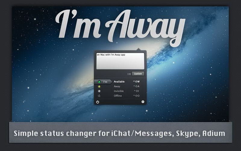 I'm Away is a simple utility that helps you change your statuses in