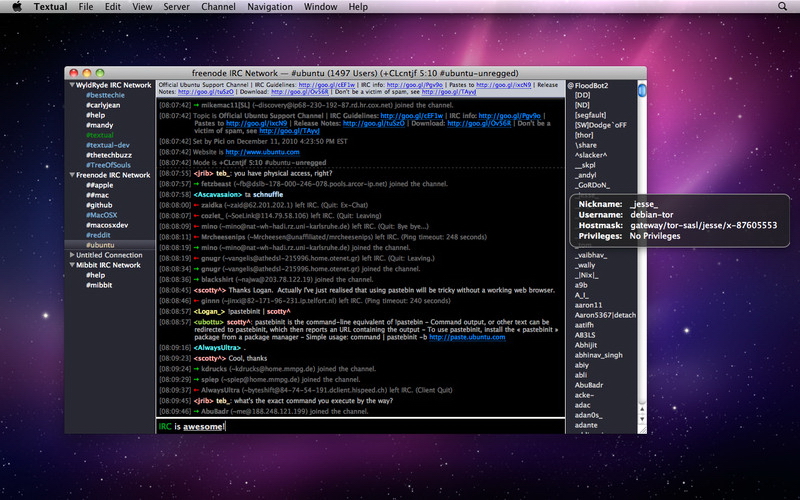 Textual provides many great features to make IRC more enjoyable:
