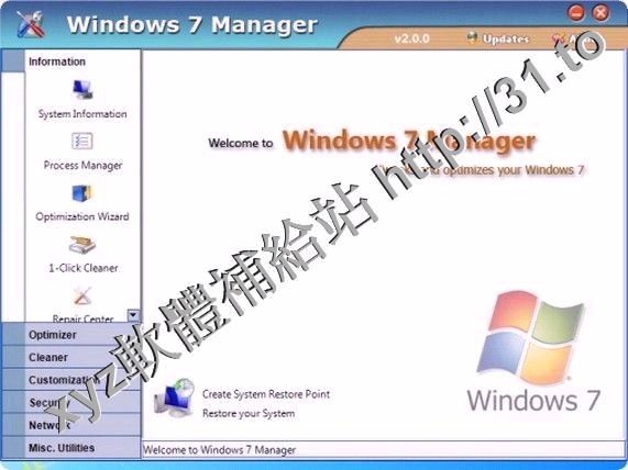 • Yamicsoft Windows 7 Manager v3.0.9.0 REPACK 英文正式版(Widnows7 總管是優化和設置軟體)